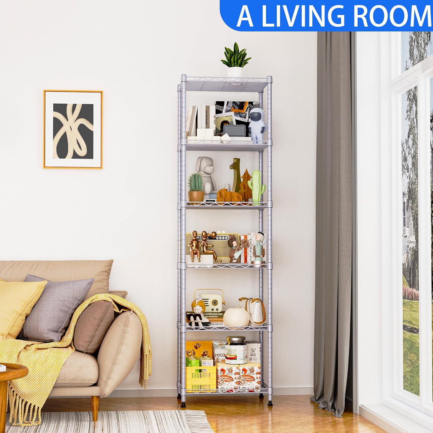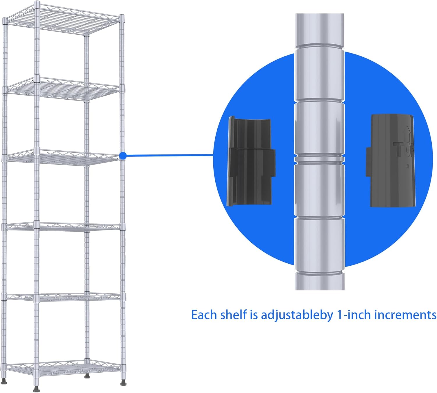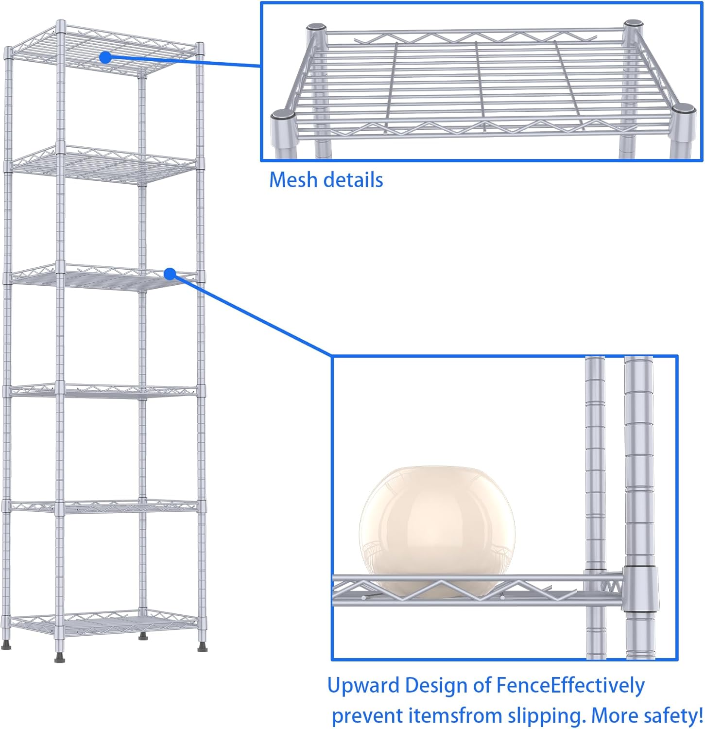 REGILLER 6 Wire Shelving Steel Storage Rack Adjustable Unit Shelves for Laundry Bathroom Kitchen Pantry Closet(Silver, 11.7″ D x 16.8″ W x 63″ H)