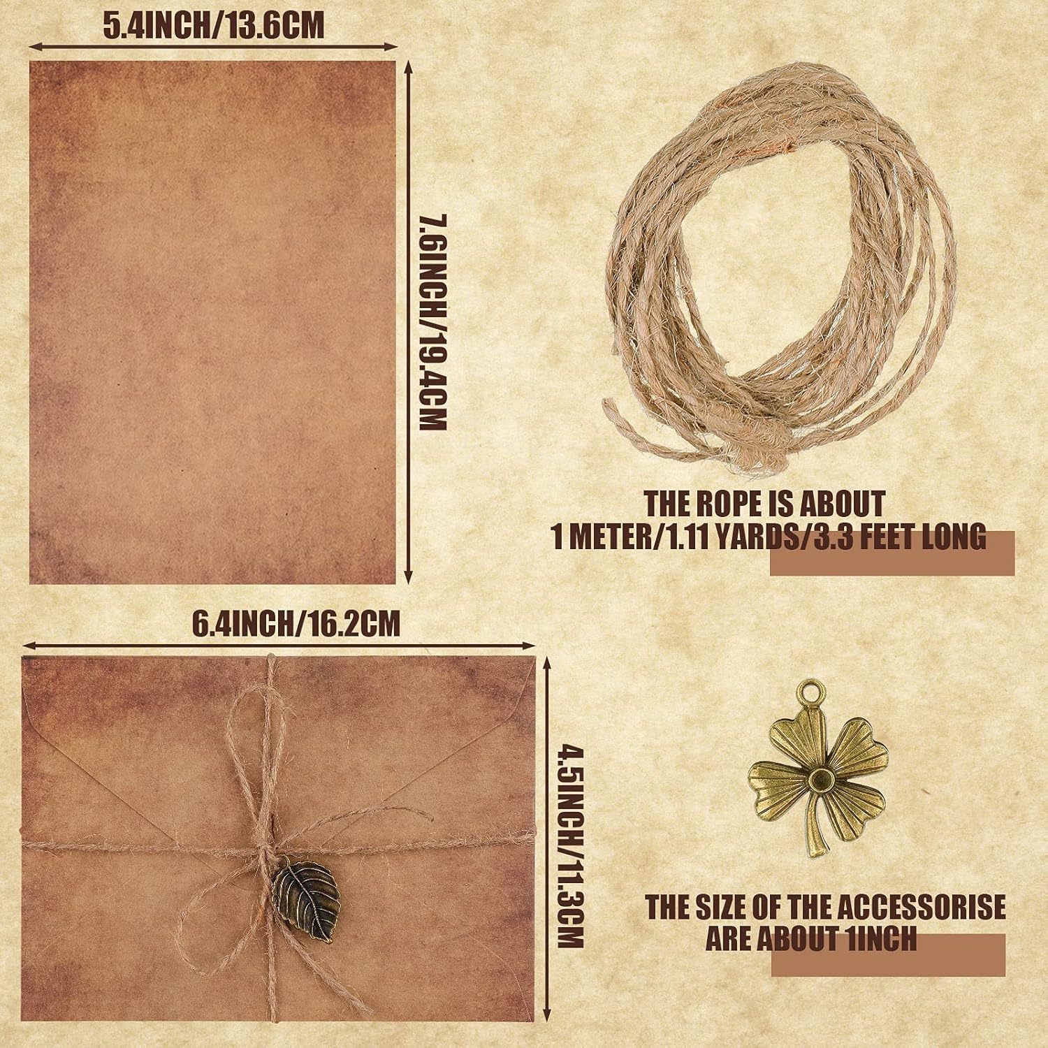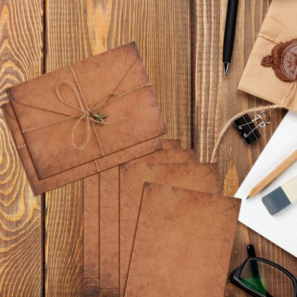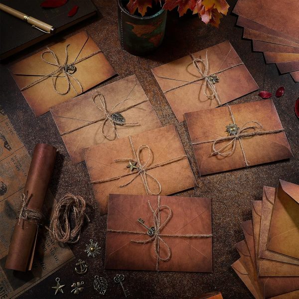 Vintage Stationary Paper and Envelopes Set, Writing Stationery Paper Letter and Envelopes Includes Sheets Antique Letter Papers, Kraft Envelopes, Retro Accessories, Rope (60 Pieces)